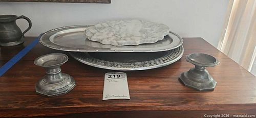 Pewter Trays and Candlesticks, Marble Cutting Board