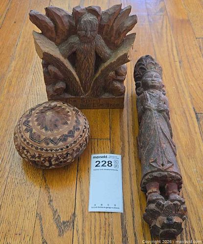 Vintage Peruvian Hand Carved Gourd, Wooden Sculpture and More