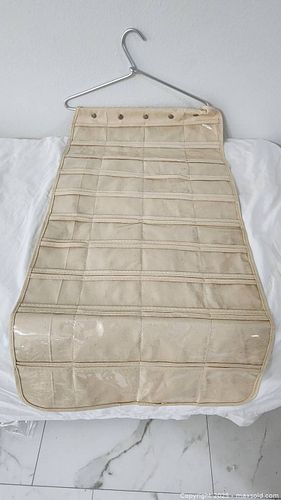 Beige/Cream Hanging Jewelry Organizer with Clear PVC Pockets