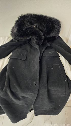 Zara Black Women's Long Winter Coat with Fur Collar