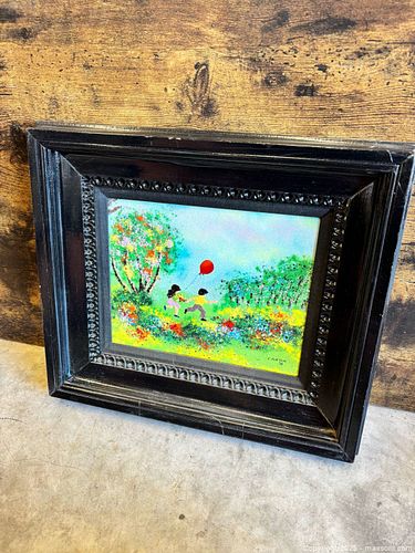 Vintage Authenticated & Signed Louis Cardin Children Playing Enamel on Copper Painting