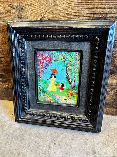Vintage Signed Louis Cardin Mother and Daughter Enamel on Copper Painting