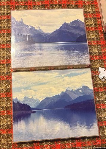 Vintage landscape depicting Maligne Lake in Alberta, Canada.