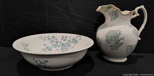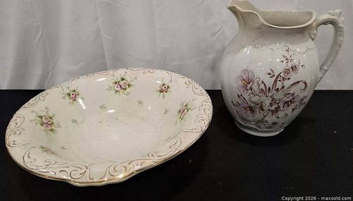 Wm. Tatler Ironstone Pitcher & Basin — Hand-Painted Floral