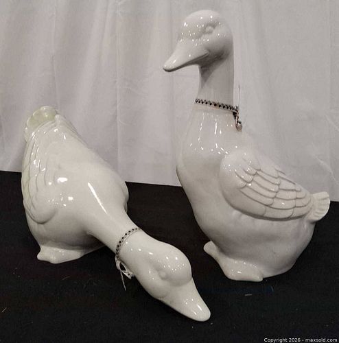 Pair of Large Glossy White Ceramic Duck Figurines