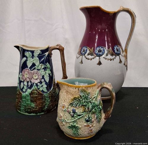 Set of 3 Decorative Ceramic/Porcelain Pitchers, Victorian/Majolica