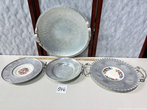 Lot of 4 Decorative Aluminum Trays with Ceramic Inserts